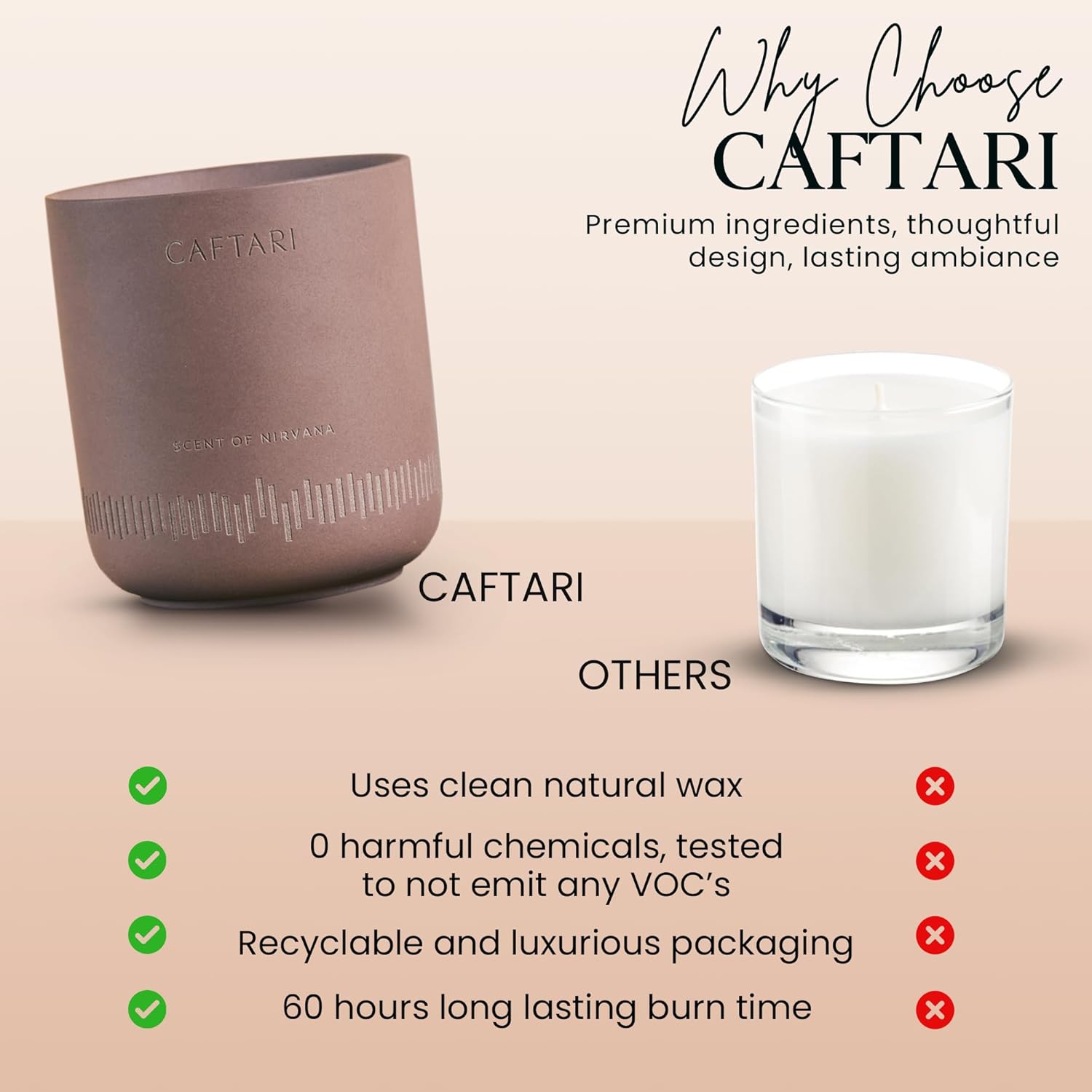 - MODERN DESIGN, ARTISAN CRAFTSMANSHIP – Each Caftari candle is expertly hand-poured into a minimalist ceramic vessel that doubles as a statement décor piece. The sleek silhouette and refined finish bring elevated style and quiet luxury to any room.